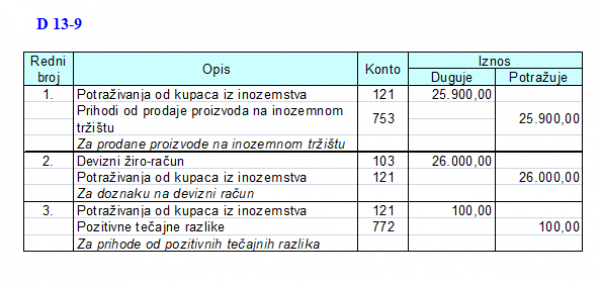 Primjer knjiženja pozitivnih tečajnih razlika