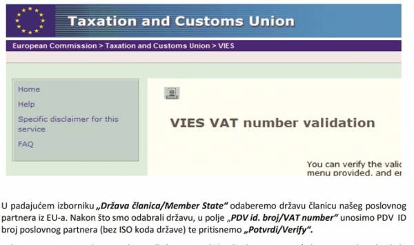 Provjeru valjanosti PDV ID broja poreznog obveznika iz druge države članice moguće je obaviti na Internet stranicama Europske komisije: http://ec.europa.eu/taxation_customs/vies/