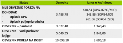 Poljoprivrednici koji su bili upisani u Upisnik poljoprivrednih gospodarstava do 1. studenog 2010. godine bili su oslobođeni plaćanja doprinosa za mirovinsko i zdravstveno osiguranje, aiko nisu bili osigurani po drugoj osnovi. Procesom usklađivanja i oni postaju obveznici doprinosa za zdravstveno osiguranje (ako nisu osigurani po drugoj osnovi), i to u iznosu od 261,66 kn mjesečno. No, naravno kad su porezne obveze OPG-a u pitanju, postoje iznimke.
