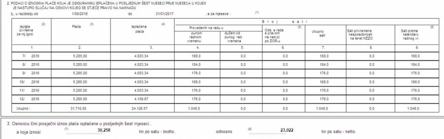 Primjer: Radnici A.V. Otvoreno je bolovanje 01. veljače, 2017 – radnica ima uvjet prethodnog staža osiguranja. Poslodavac ispostavlja Potvrdu o plaći: