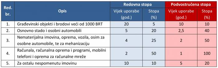 Tablica 1. Pregled porezno dopuštenih stopa amortizacije prema Zakonu o porezu na dobit