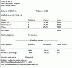 Članak 54.a Općeg poreznog zakona propisuje podatke za račune gotovinskog prometa, isječke vrpce ili potvrdnice iz naplatnih uređaja, i to: - broj i nadnevak izdavanja - ime (naziv), adresu i osobni identifikacijski broj poduzetnika koji je isporučio dobra ili obavio usluge te naznaku mjesta gdje je isporuka dobara ili usluga obavljena (broj prodajnog mjesta, poslovnog prostora, prodavaonice i sl.) - količinu i uobičajeni trgovački naziv isporučenih dobara te vrstu i količinu obavljenih usluga - ukupan iznos naknade i poreza razvrstani po poreznoj stopi.