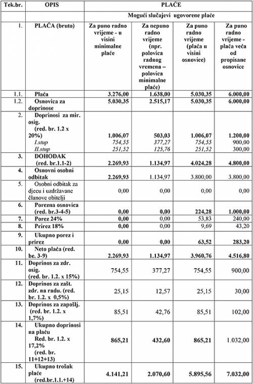 PRIMJERI PRIMJENE NAJNIŽE OSNOVICE ZA DOPRINOS ČLANA UPRAVE, IZVRŠNOG DIREKTORA ODNOSNO UPRAVITELJA ZADRUGE