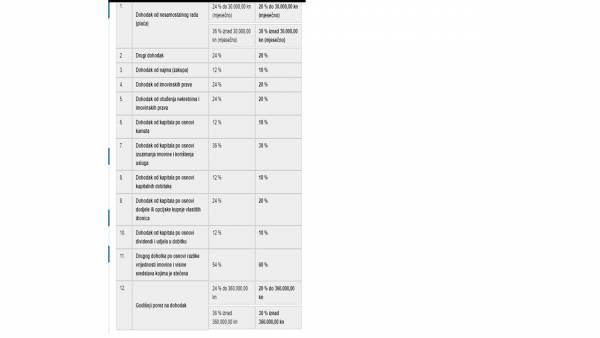 Smanjuju se stope poreza na dohodak kako je prikazano u tablici u nastavku:
